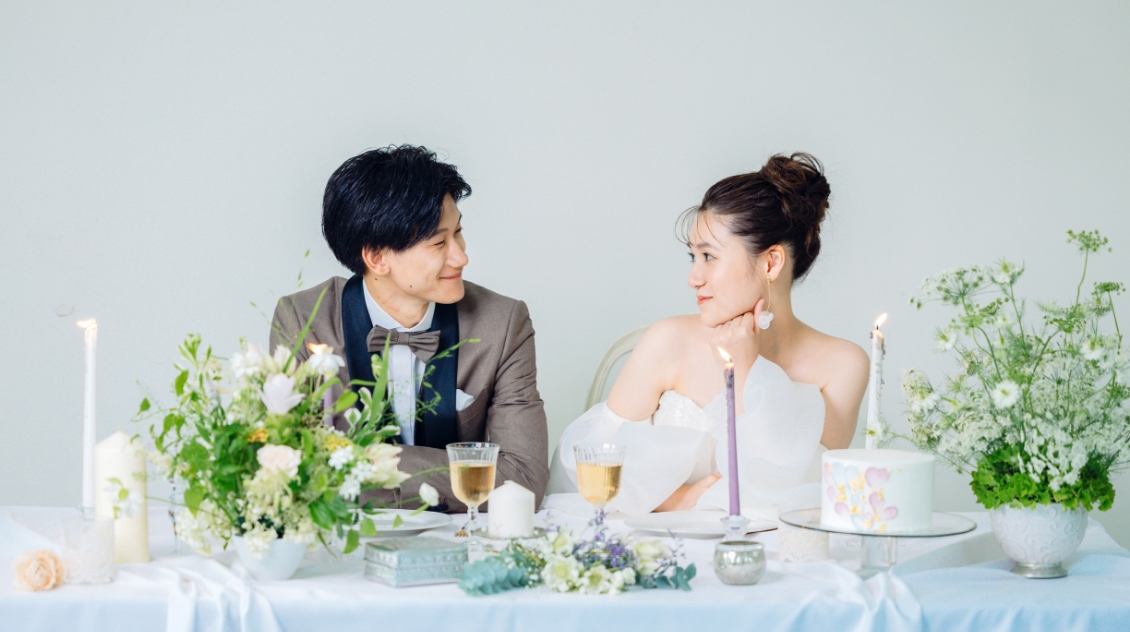 一面に広がる真っ白な空間におふたりの想いを想像する